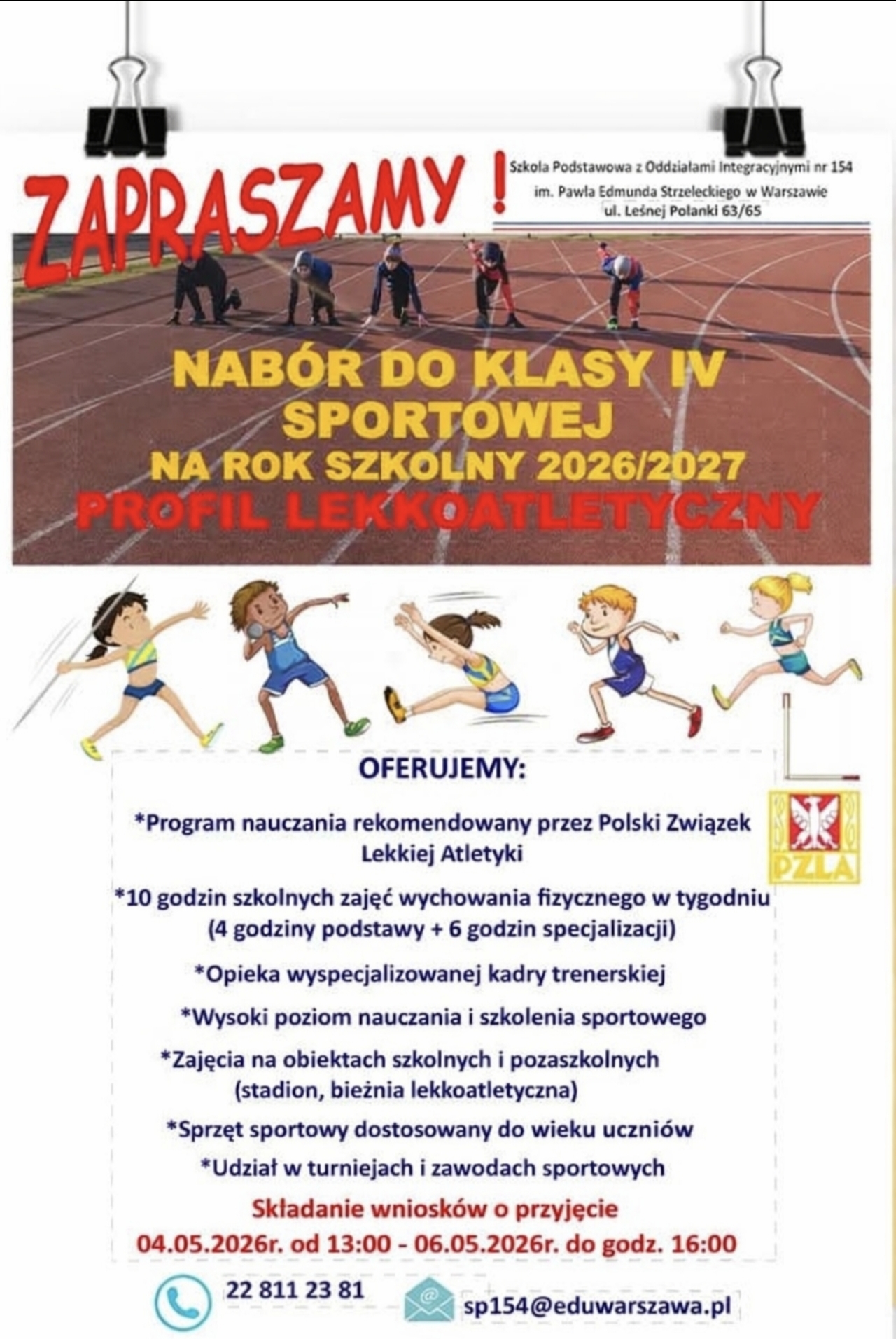 Serdecznie zapraszamy wszystkich uczniów klas trzecich do klasy IV sportowej w Szkole Podstawowej z Oddziałami Integracyjnymi nr 154.
