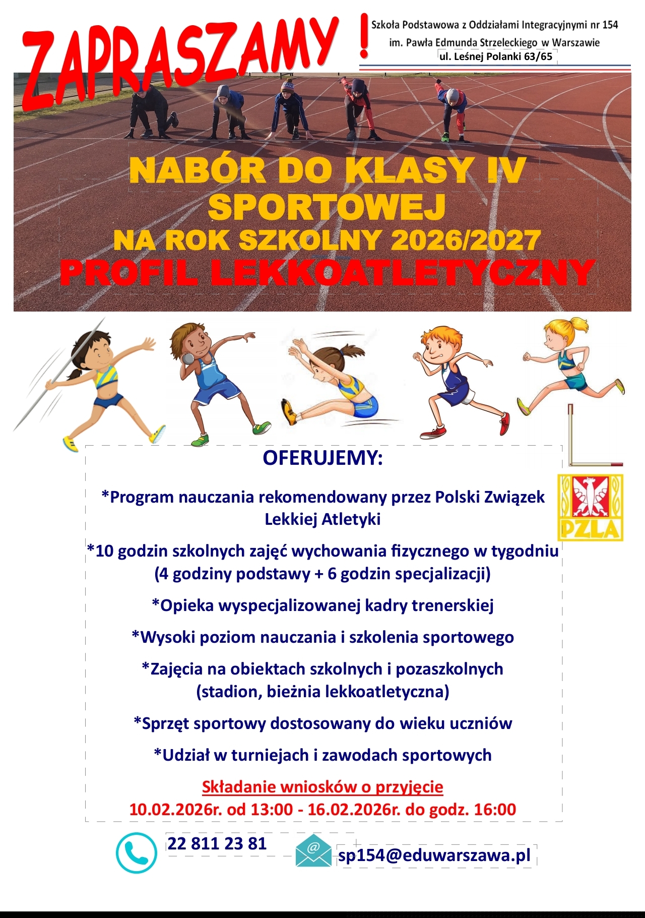 Rekrutacja do klas IV sportowych w szkołach podstawowych rozpocznie się 10 lutego br. o godz. 13:00 i prowadzona będzie za pomocą elektronicznego systemu rekrutacji dostępnego pod adresem: